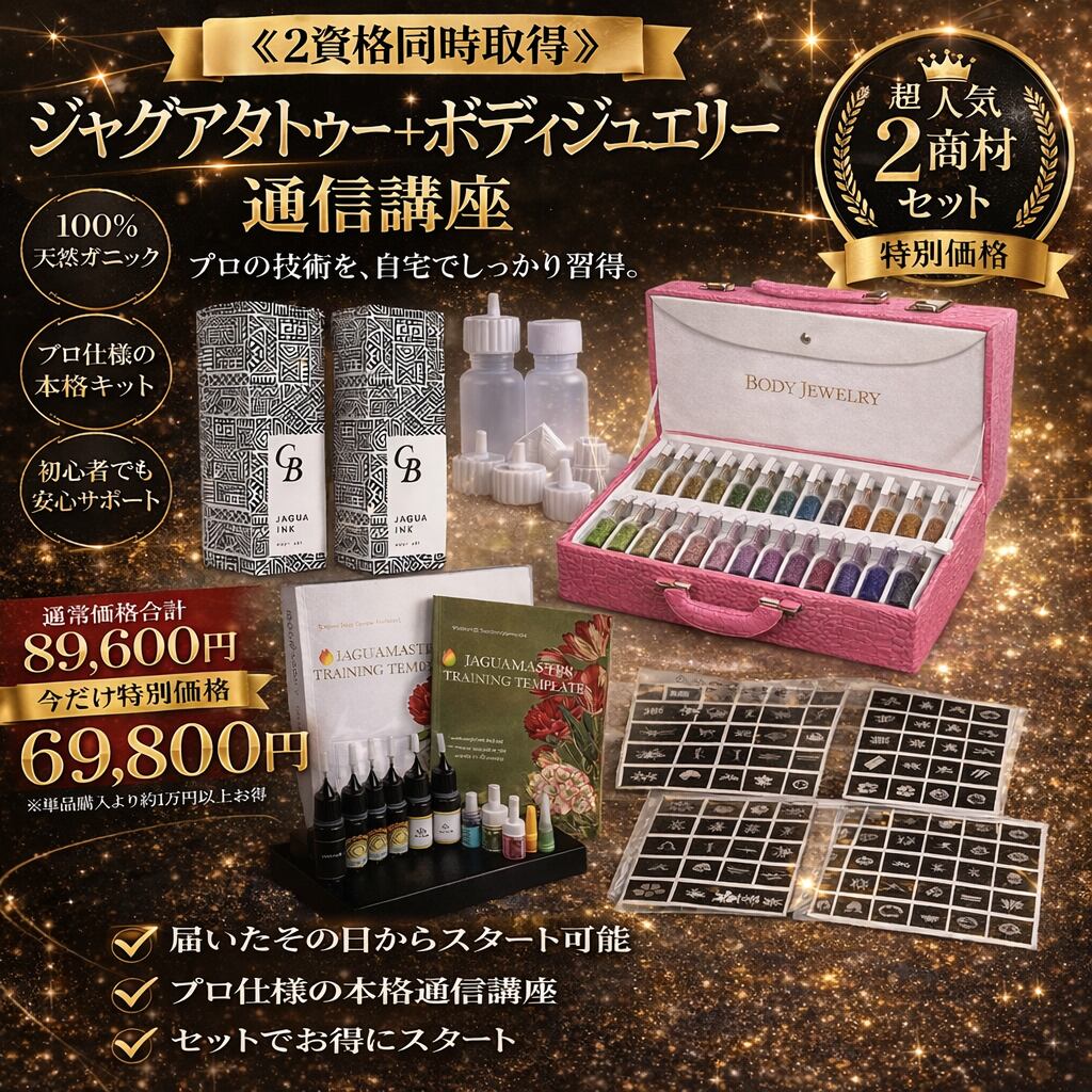 ≪通信講座/2資格取得≫ジャグアタトゥー+ボディジュエリー通信講座/超豪華キット